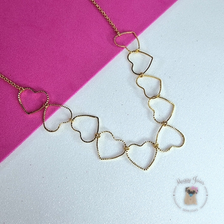 • Choker folheado a ouro corações cravejados