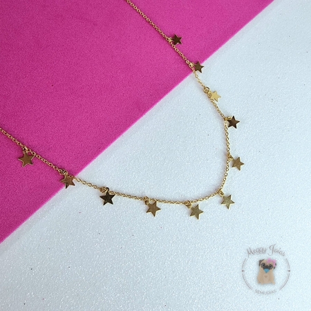 • Choker folheado a ouro estrelas