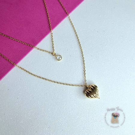 • Choker folheado a ouro coração e pedra transparente