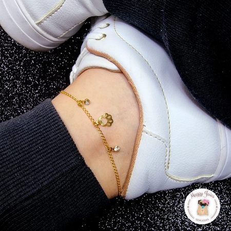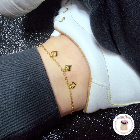 • Tornozeleira folheada a ouro bolinhas e olho grego