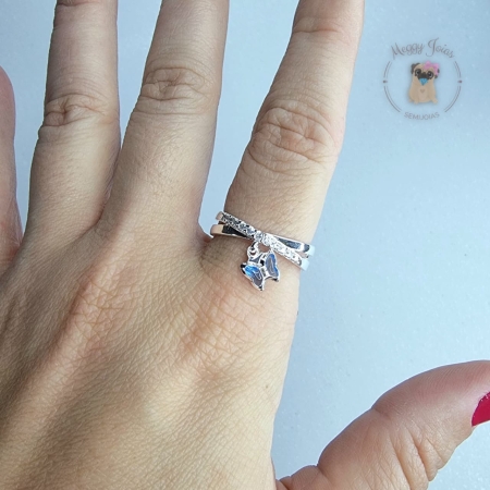 - Anél folheado a ouro duplo com coração embutido vazado;