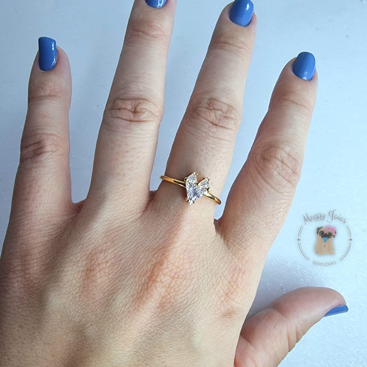 - Anél folheado a ouro com coração de pedra de zirconia;