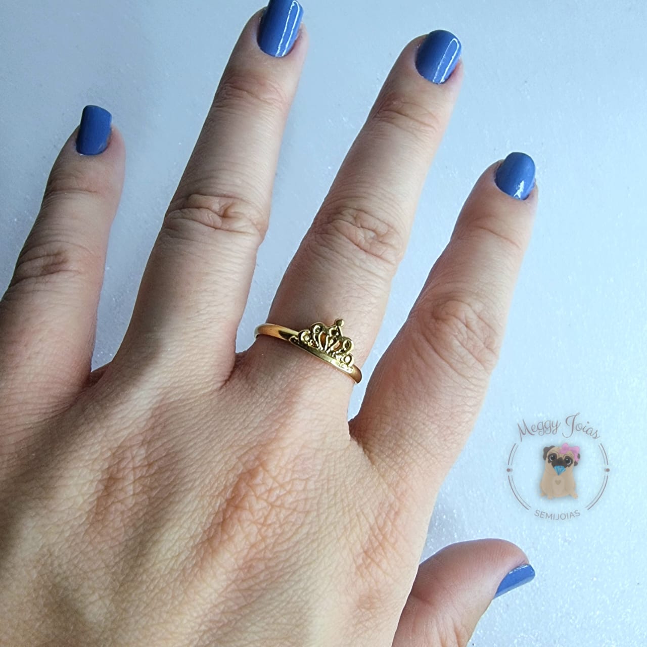 - Anél folheado a ouro trabalhado coroa alto relevo;