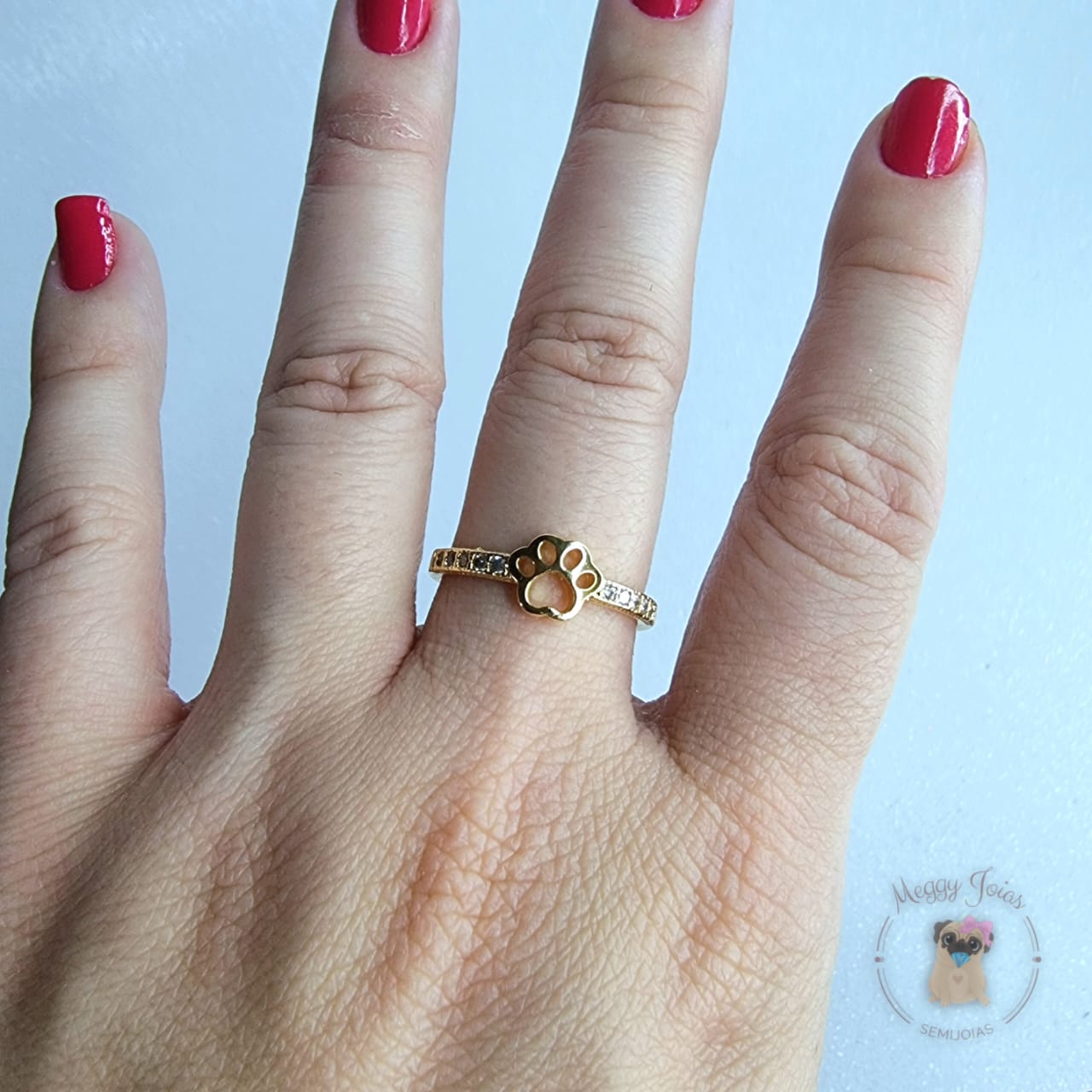 - Anél folheado a ouro trabalhado patinha com pedrinhas embutidas;