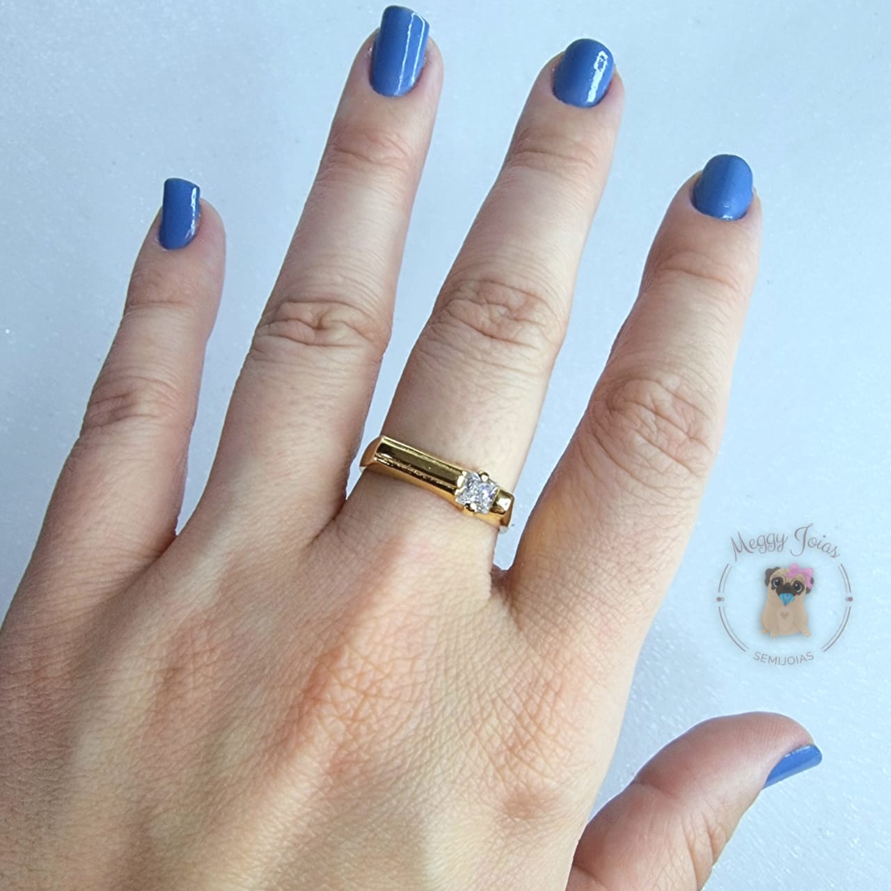 - Anél folheado a ouro Xuxa com pedrinha de zirconia embutida;