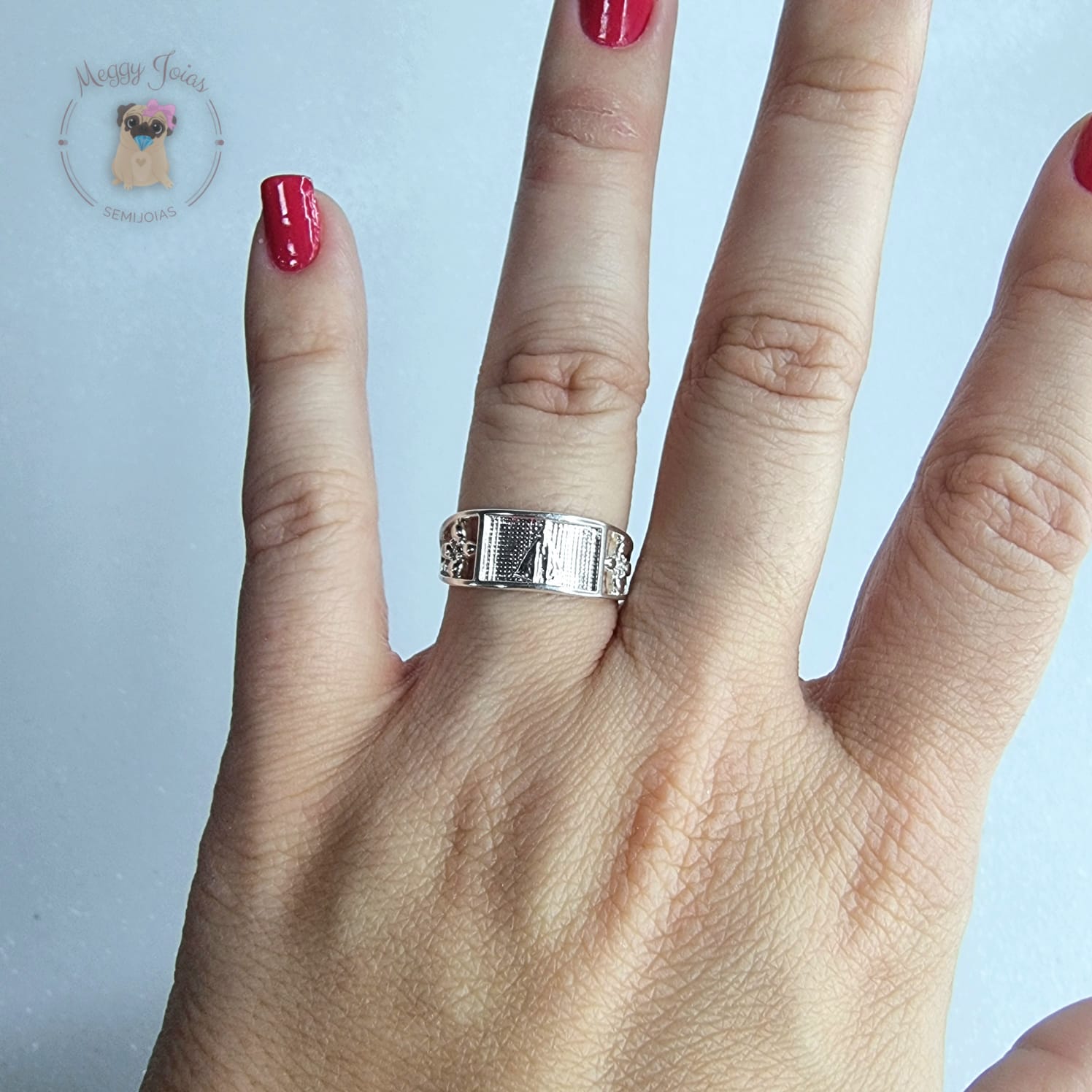 - Anél prata trabalhado Nossa Senhora com detalhes foscos;