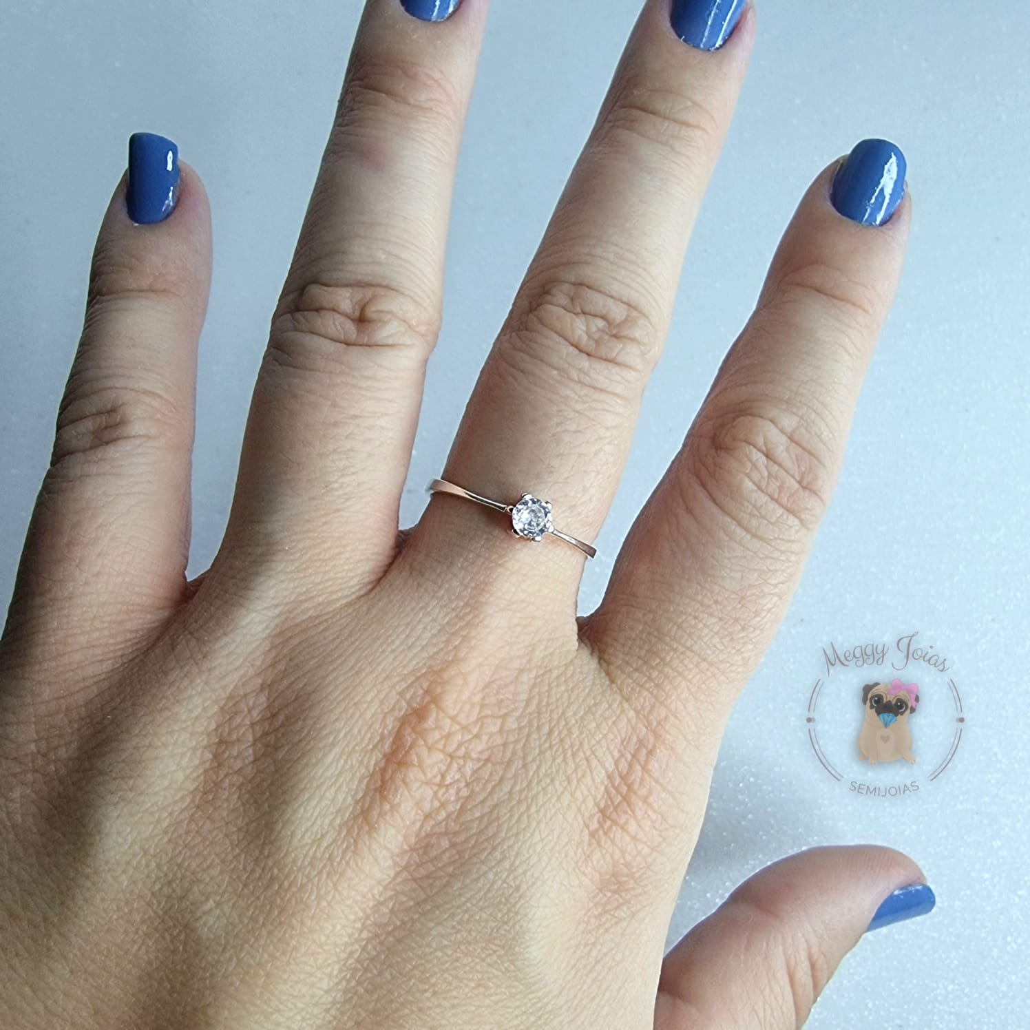 - Anél prata solitário com pedra de zirconia;