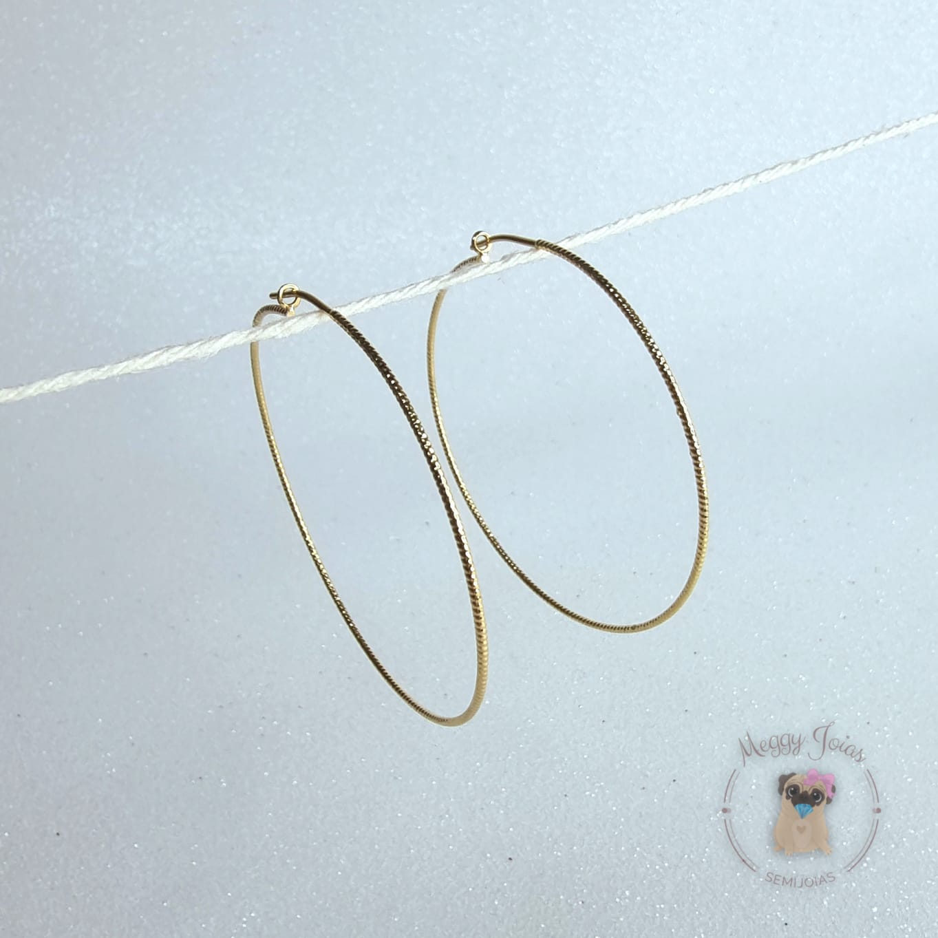 - Argola folheada a ouro trabalhada com bolinhas pontilhadas fina;