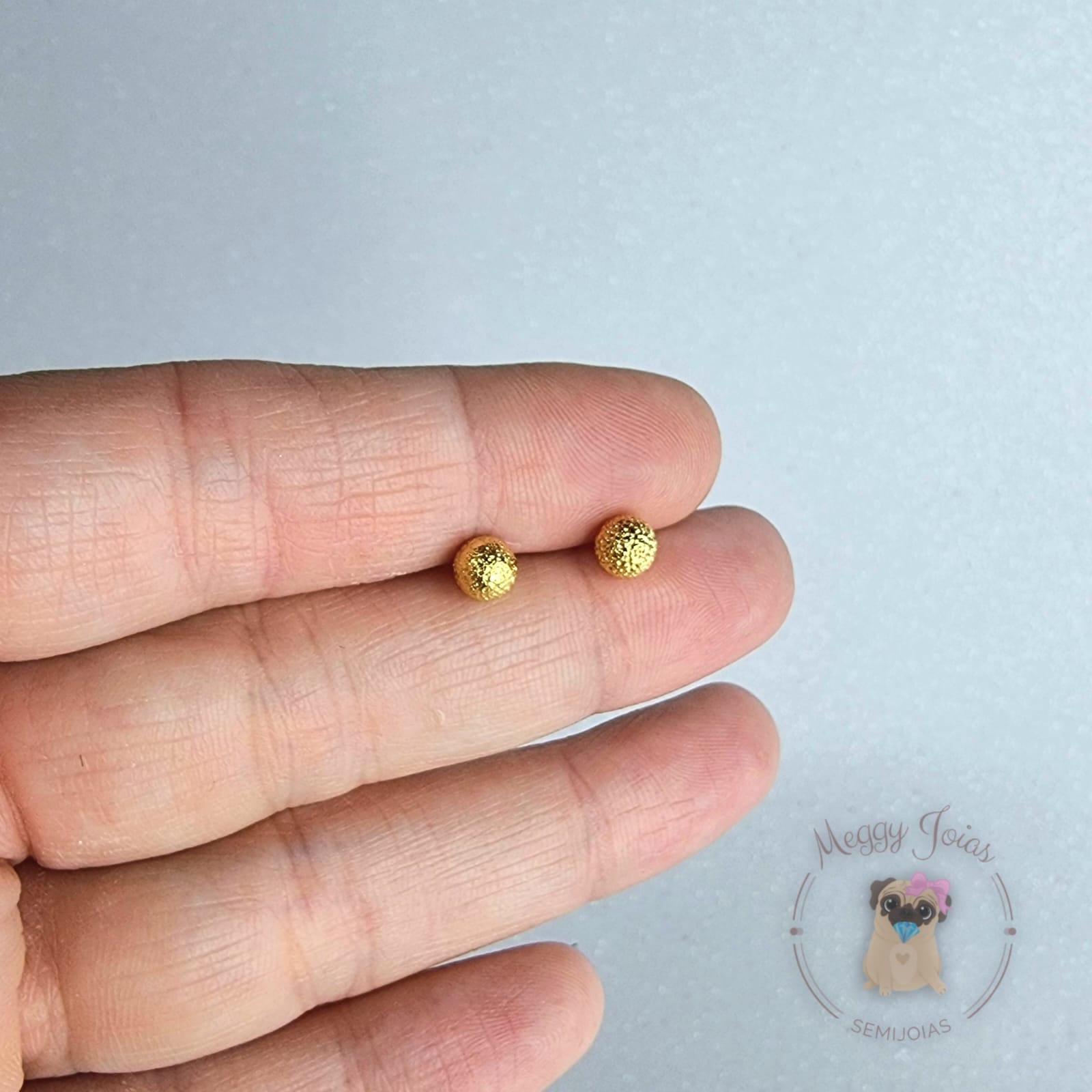 - Brinco folheado a ouro bolinha lisa média/pequena;