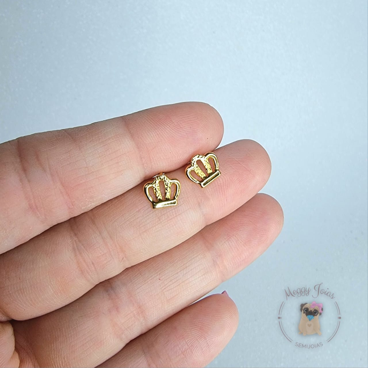 - Brinco folheado a ouro coroa com detalhes cravejados;