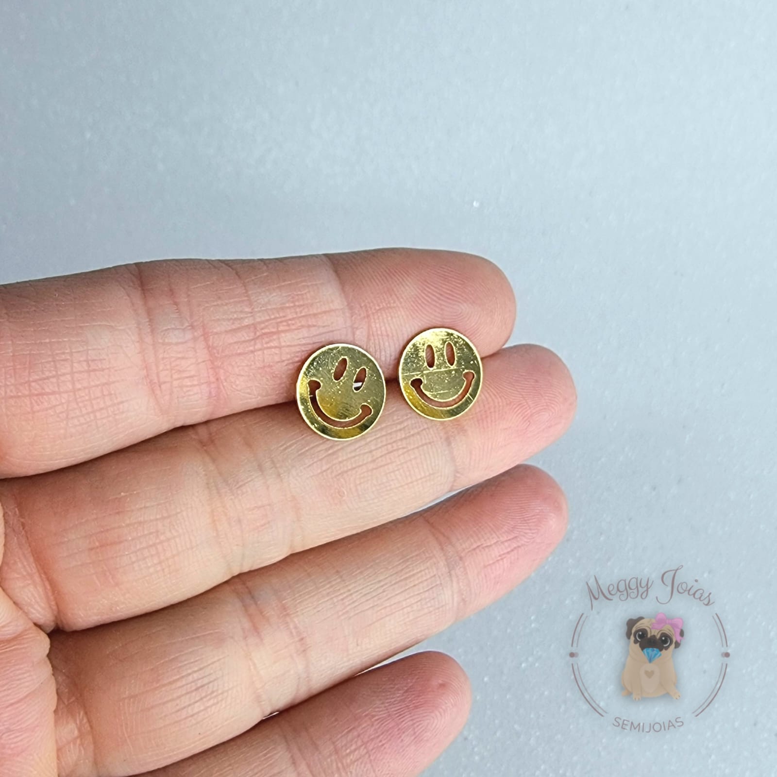 - Brinco folheado a ouro com carinha de emoji chapeado;