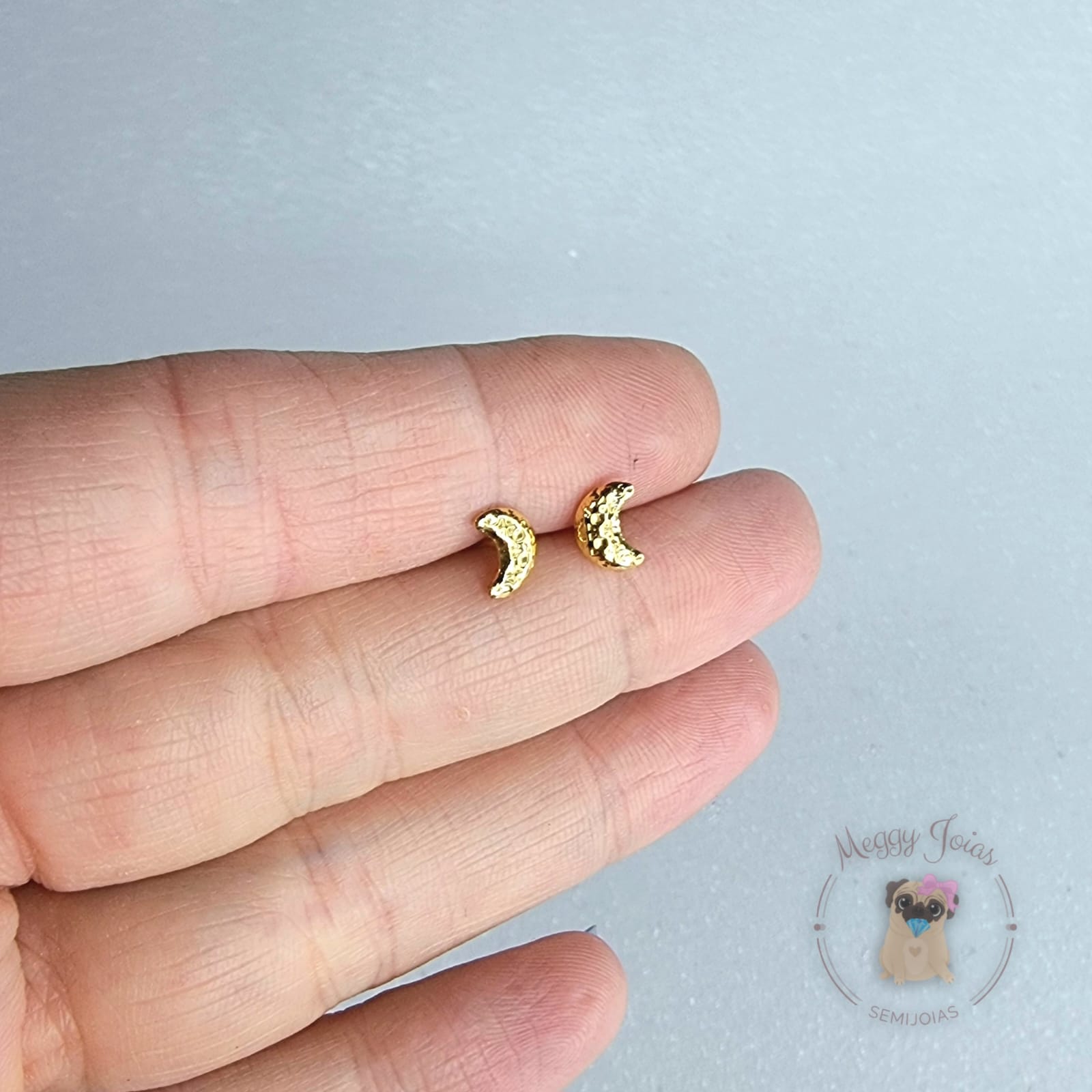 - Brinco folheado a ouro Lua com detalhes;