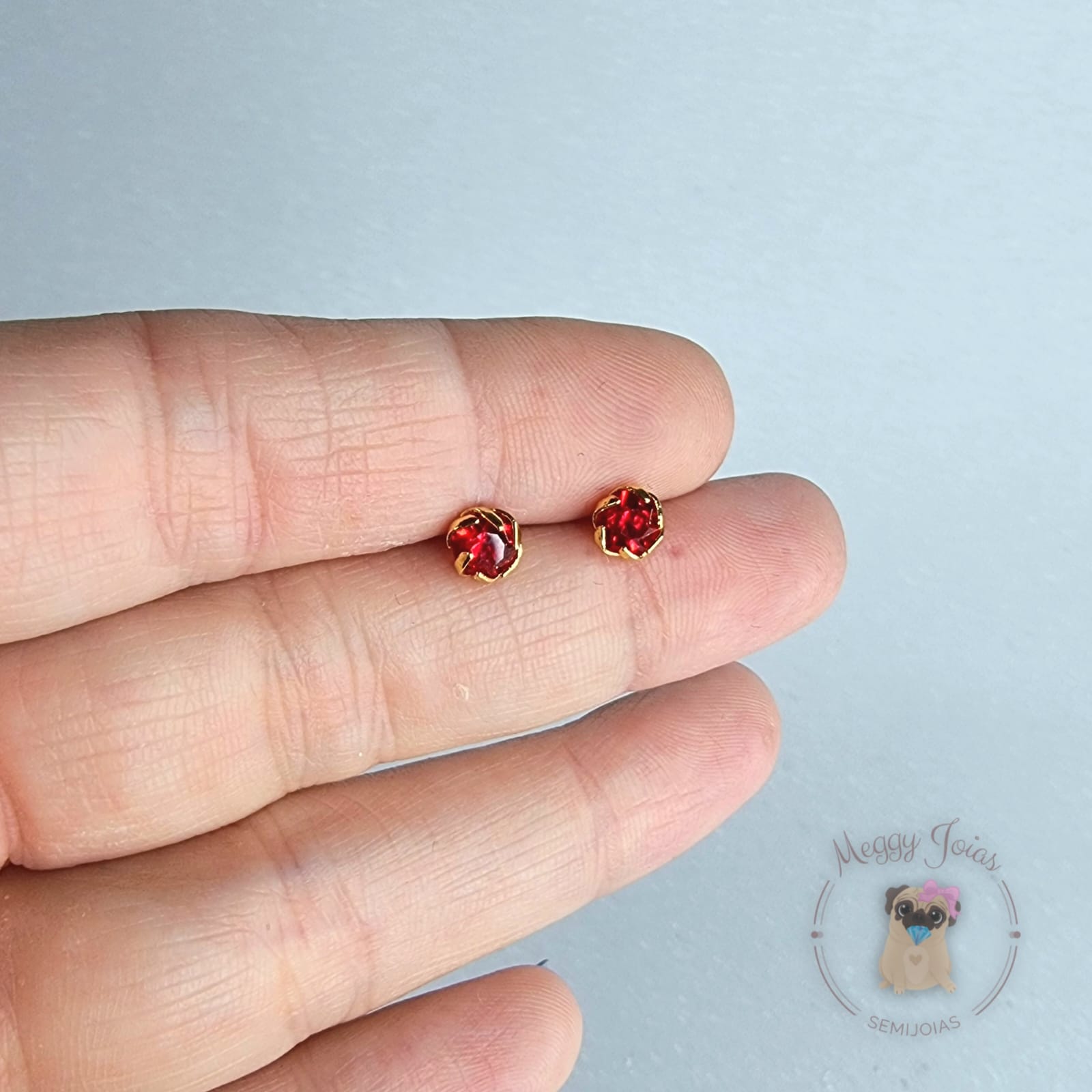 - Brinco folheado a ouro trabalhado com pedra vermelha;