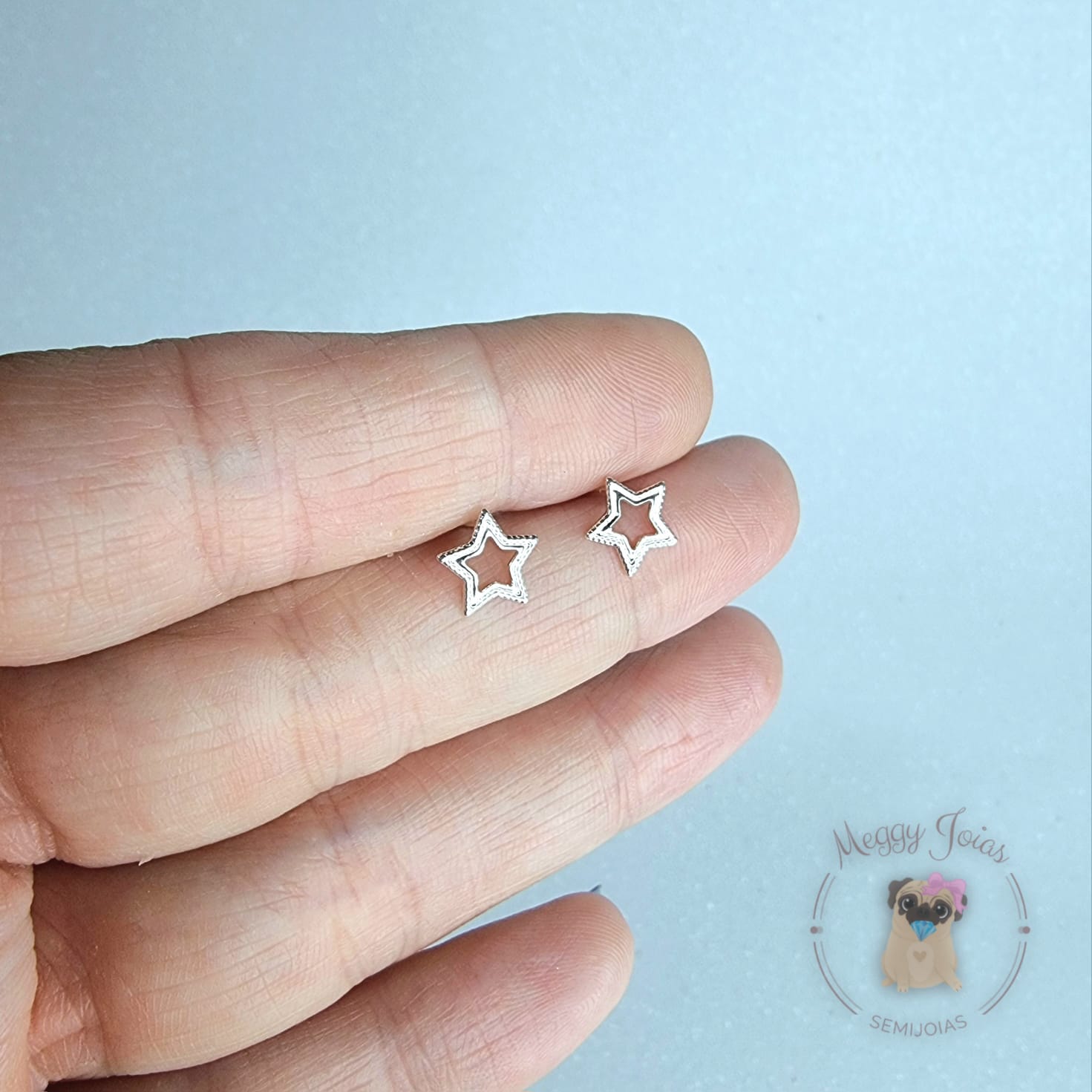 - Brinco prata estrela trabalhado;