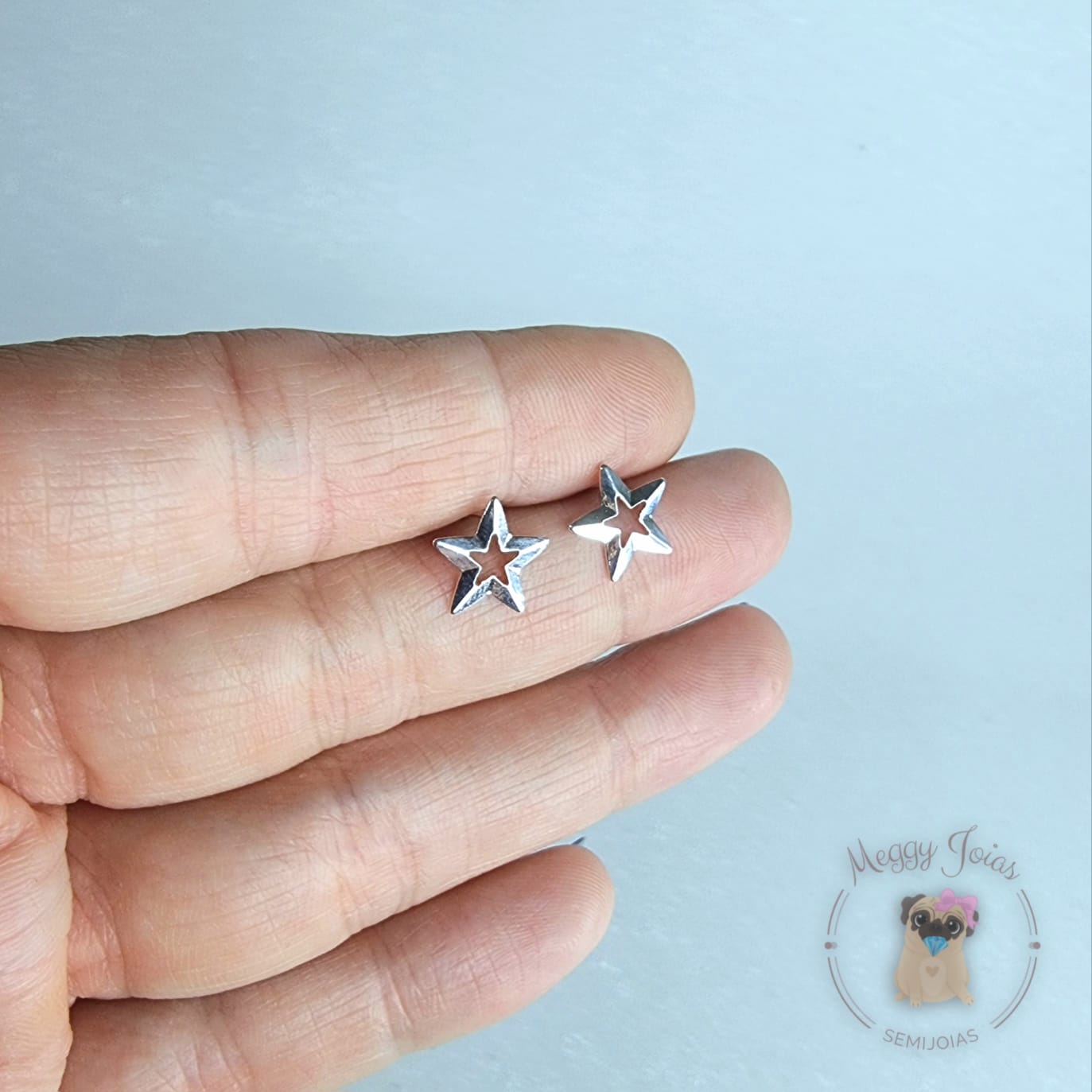 - Brinco prata estrela vazada trabalhada;