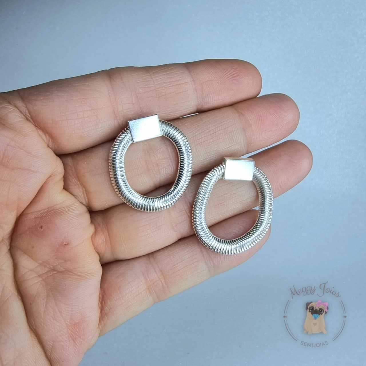 - Brinco prata trabalhado modelo cobra círculo;