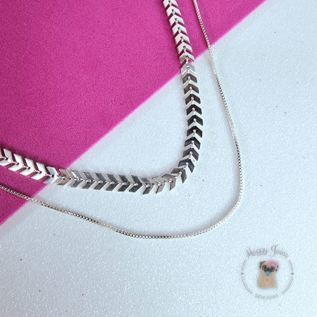 - Colar prata trabalhado mini elos com pingentes embutidos;