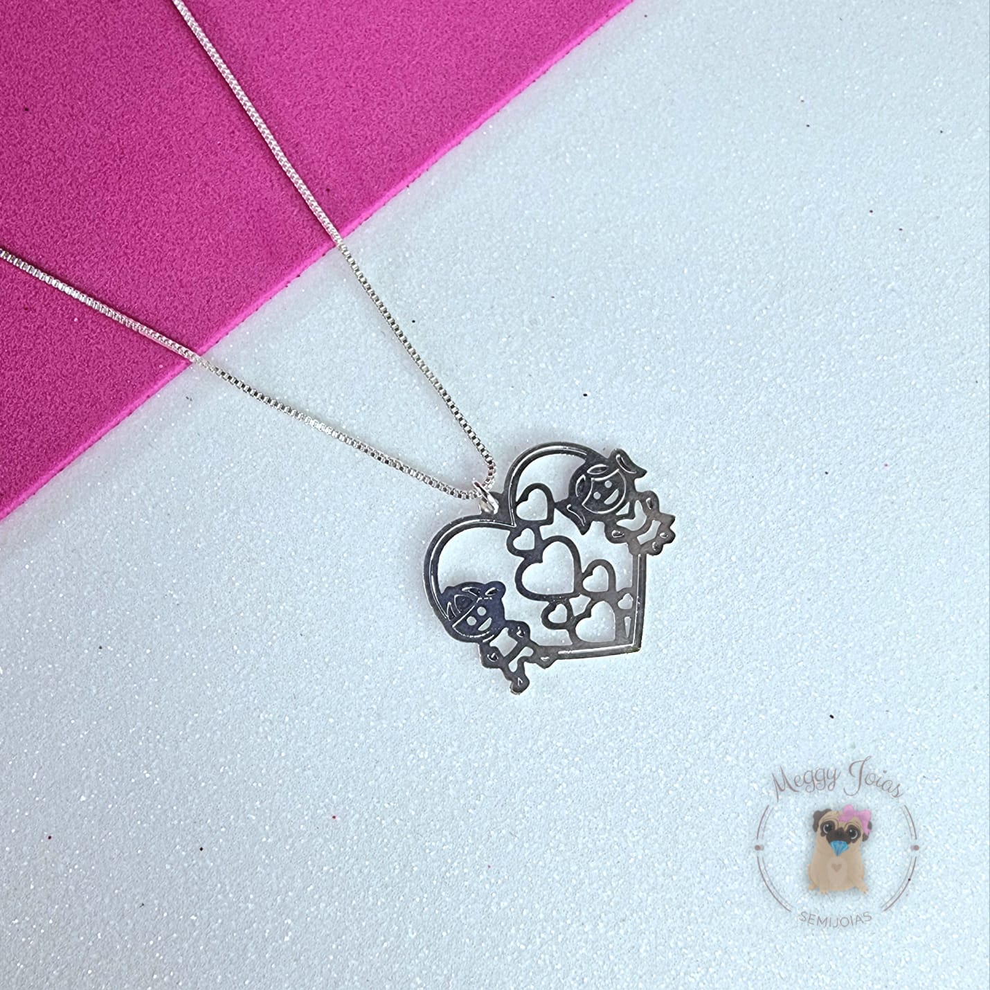 - Pingente de coração com casal menino e menina;