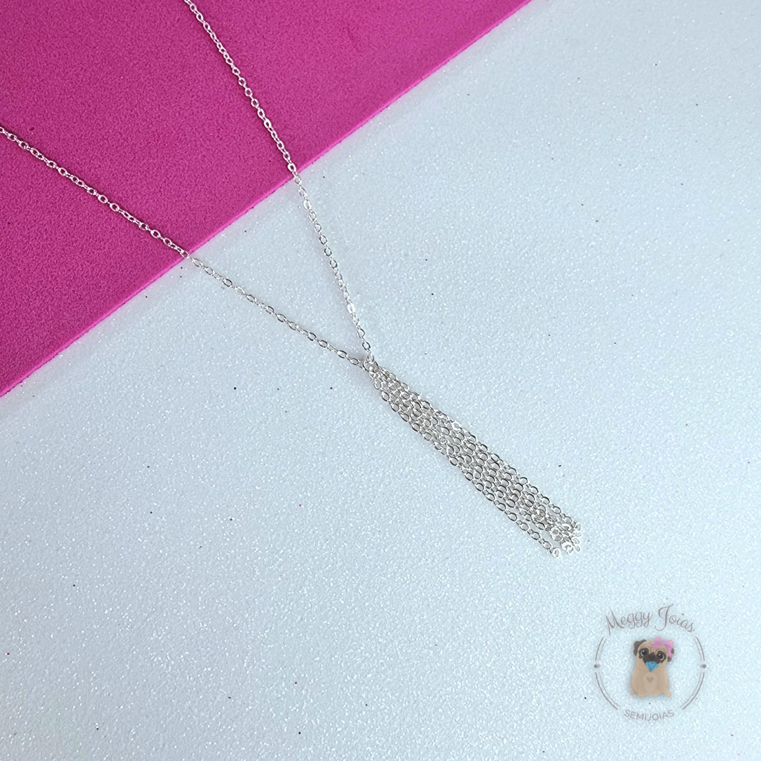 - Colar prata modelo gravata trabalhado mini elos com cortininha;