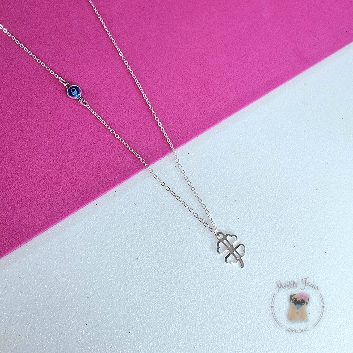 - Pingentes de olho grego e trevo de 4 folhas chapeado;