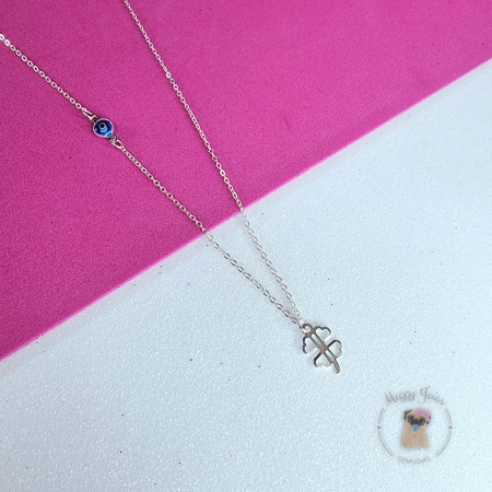 - Pingente Espírito Santo chapeado e pingente de cruz cravejado com pedrinhas de zirconia;