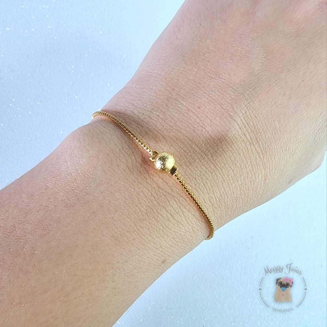 - Pulseira folheada a ouro veneziana com bolinha fosca embutida;