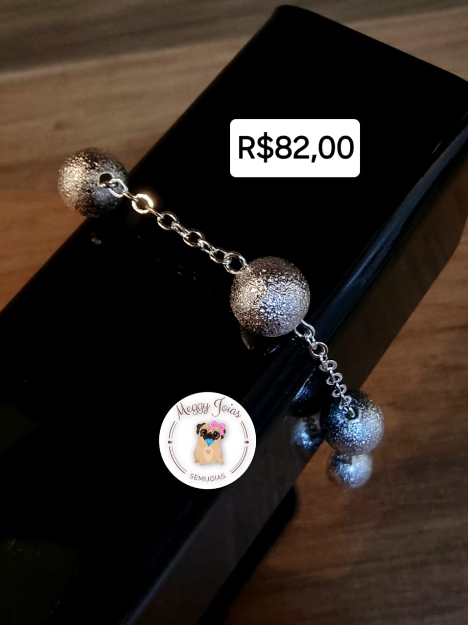 - Pulseira prata trabalhada com bolas foscas grandes embutidas;