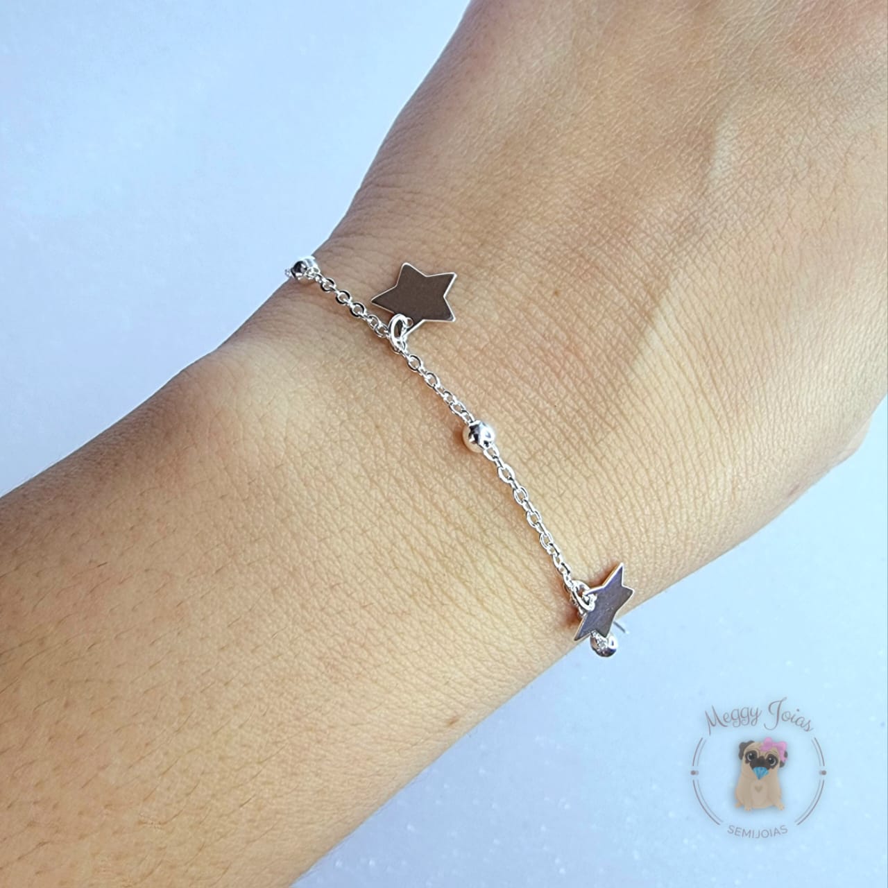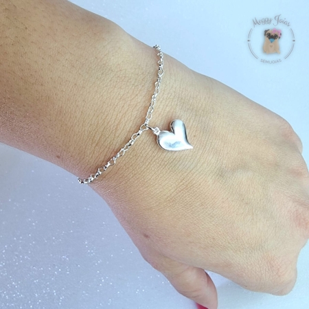 - Pulseira prata trabalhada mini elos com bolinhas e pingentes embutidos;