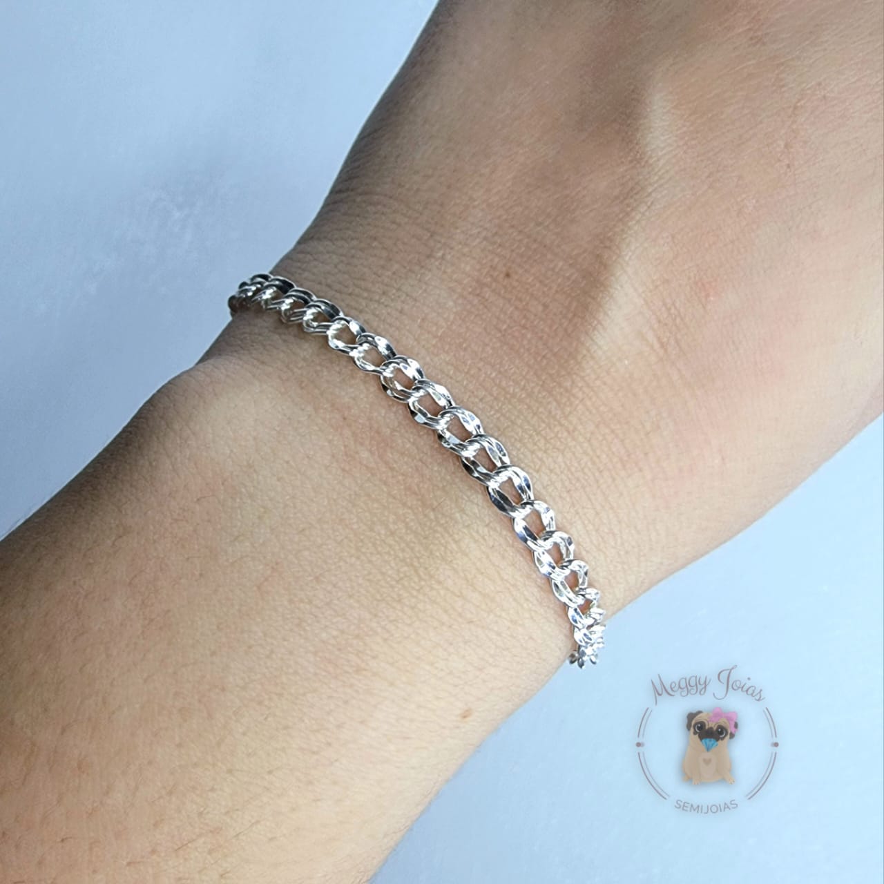 - Pulseira prata trabalhada grumet duplo;