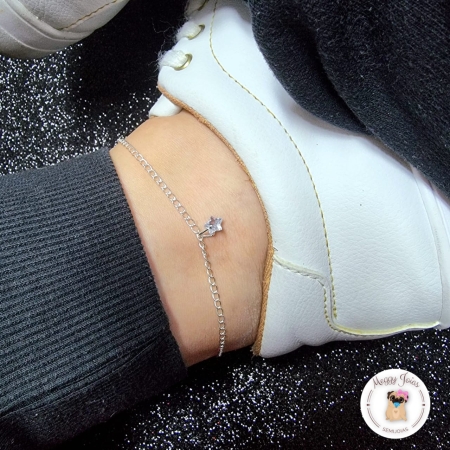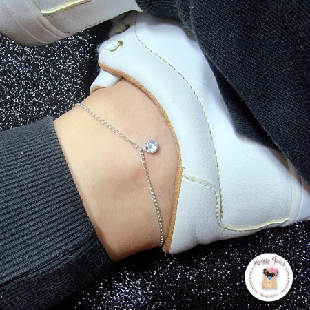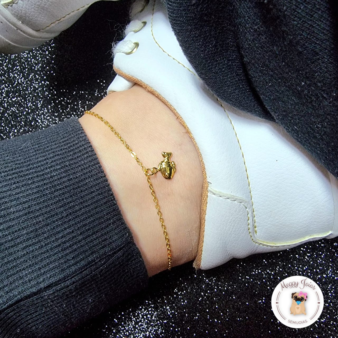 - Tornozeleira folheada a ouro trabalhada mini elos com pingente embutido;