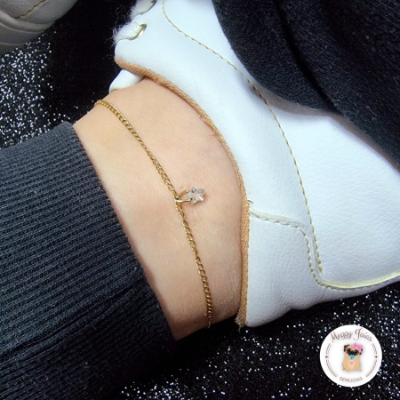 - Tornozeleira prata trabalhada grumet com detalhes chapeados;