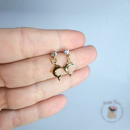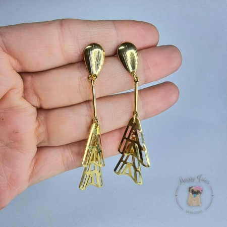 • Brinco folheado a ouro chuveirinho pedra vermelha