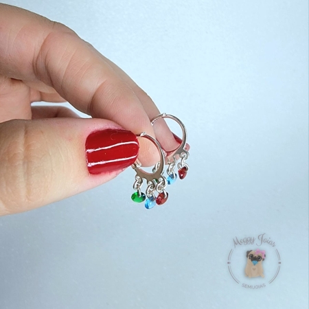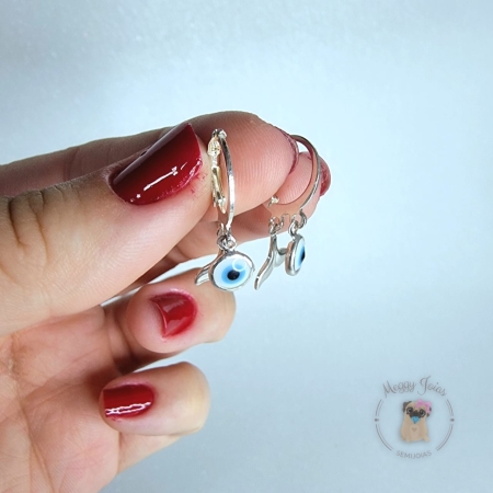 • Brinco prata argolinha com olho grego e rabo/calda de sereia