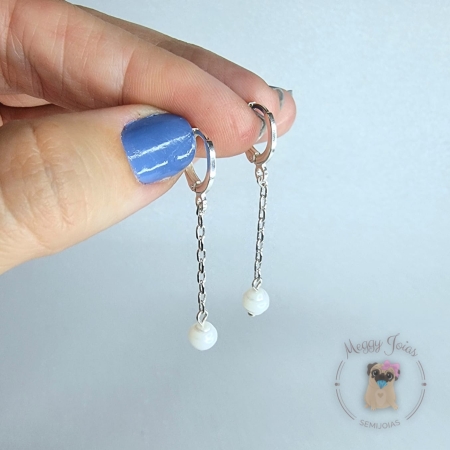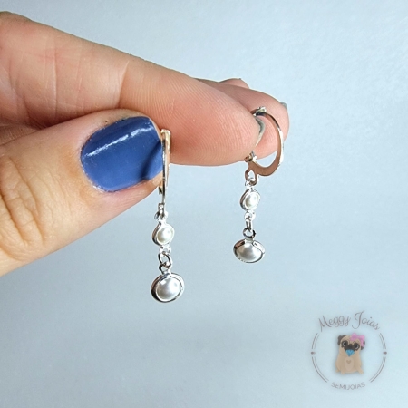 • Brinco prata argolinha cruz, pérola e medalinha de São Bento