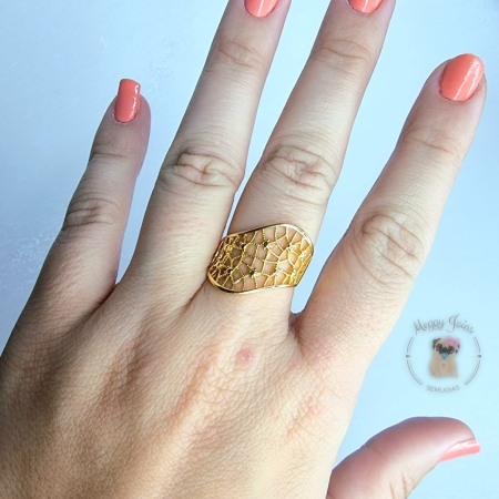 • Anél folheado a ouro trabalhado fosco