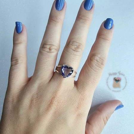 • Anél prata coração pedra roxa